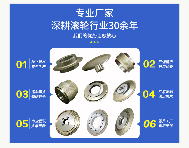 金剛石滾輪是用于大批量成型磨削的專用機(jī)床和齒輪磨床加工的高效率、高壽命、低成本的砂輪修整工具。(對(duì)比金剛石修整筆價(jià)格高很多,滾輪使用一段時(shí)間后修整需要用到電火花技術(shù),所以在給客戶推薦的時(shí)候需要了解客戶使用的設(shè)備) 2.金剛石滾輪的輪廓形狀、尺寸和精度是根據(jù)被加工零件的相應(yīng)技術(shù)要求而設(shè)計(jì)制造的,按用戶機(jī)床上的修整裝置的連接尺寸要求而定 3.金剛石滾輪的應(yīng)用:齒輪、軸承、曲軸、絲杠、球籠、葉片、油嘴油泵、工量刃具、導(dǎo)軌滑塊、微軌、卡尺等加工砂輪的修整 Vol .1 1.金剛石滾輪的工作原理: 通過(guò)安裝在磨床的修整裝置上,金剛石滾輪修整普通陶瓷砂輪或CBN砂輪,砂輪成型后再磨削零件,從而將金剛石滾輪的外形輪廓及精度、尺寸通過(guò)砂輪復(fù)制到被加工的零件表面。 2.特點(diǎn)/優(yōu)點(diǎn): 機(jī)床操作簡(jiǎn)單,對(duì)操作工人的技術(shù)要求不高,加工的產(chǎn)品精度一致性好,質(zhì)量穩(wěn)定,能顯著提高生產(chǎn)效率和產(chǎn)品質(zhì)量,降低制造成本,容易實(shí)現(xiàn)磨削加工自動(dòng)化。 |